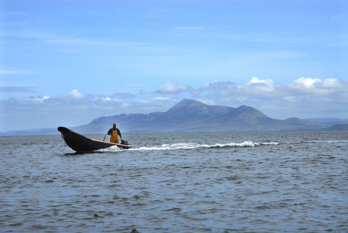 A fisherman in his currach travelling across from Currane to Achillbeg.
